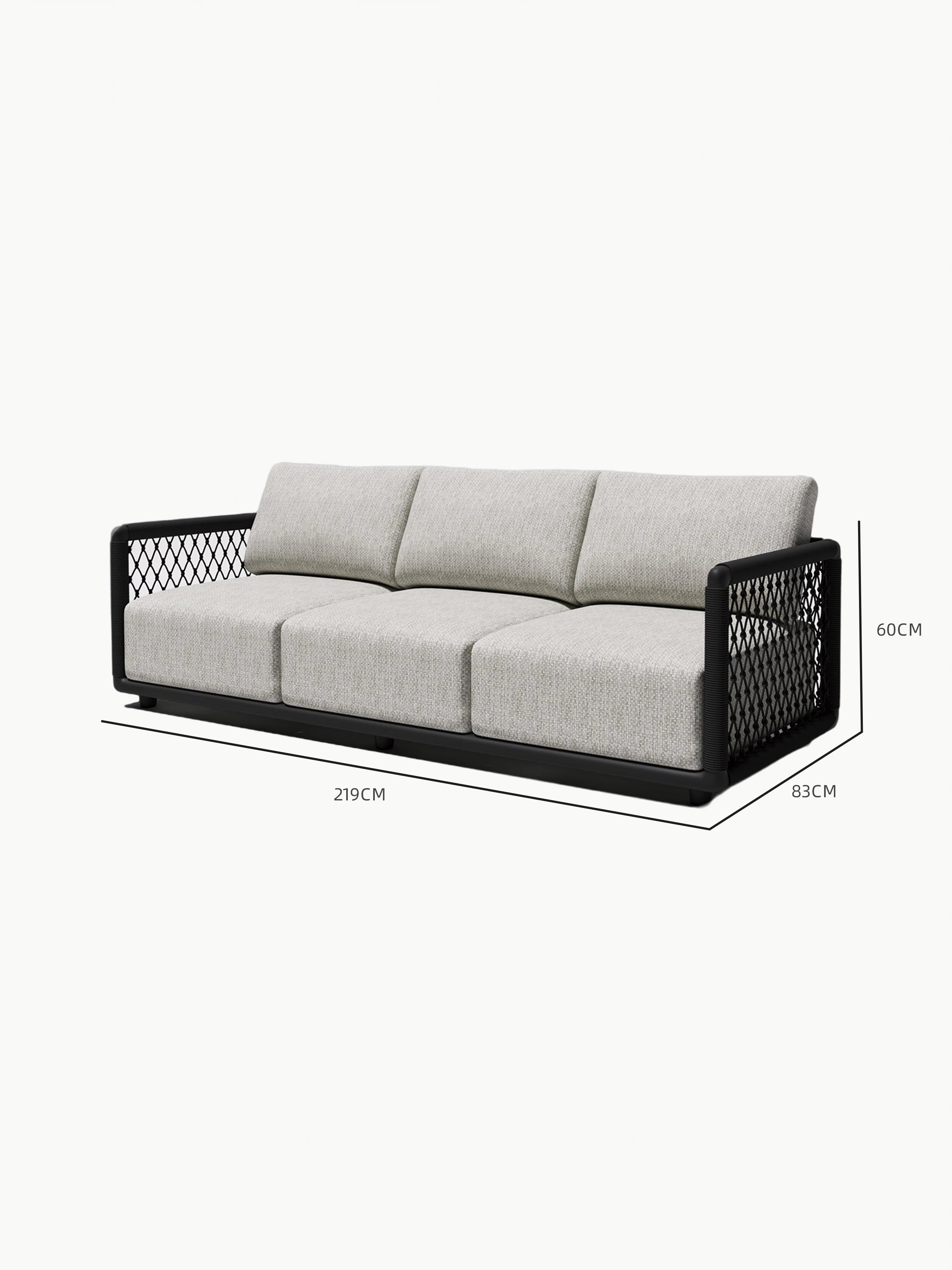 Hochwertige Outdoor-Materialien machen das Sofa widerstandsfähig gegenüber Sonne, Regen und Feuchtigkeit. Gleichzeitig fügt es sich harmonisch ins Innenraumdesign ein.